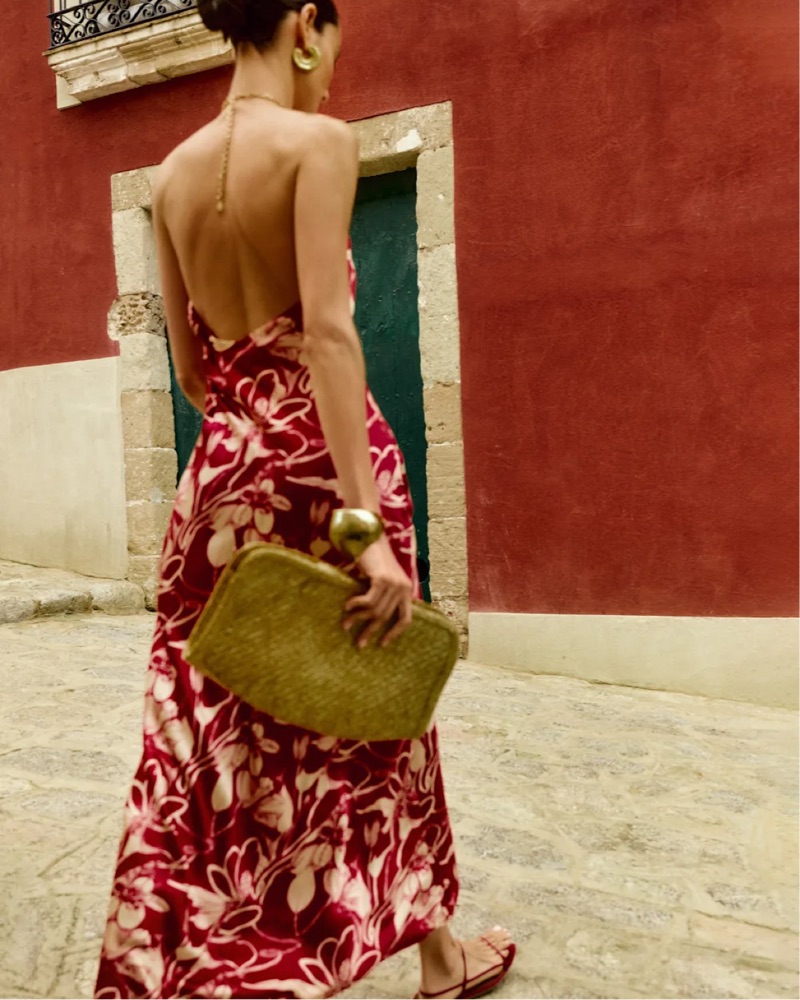 This vibrant floral maxi dress is perfect for a tropical vacation or summer event. The bold, eye-catching pattern and halter neckline create a stunning, feminine look.