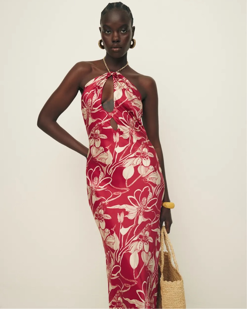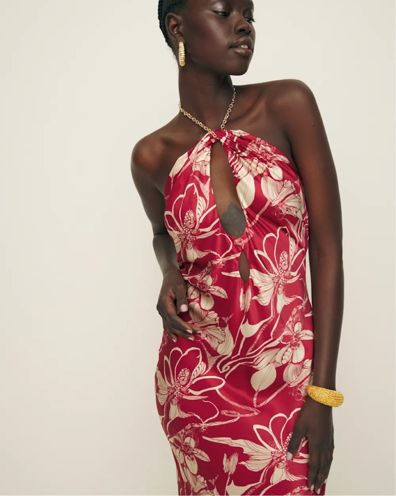 Reformation Red Floral Halter Maxi Dress