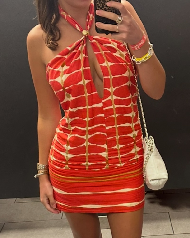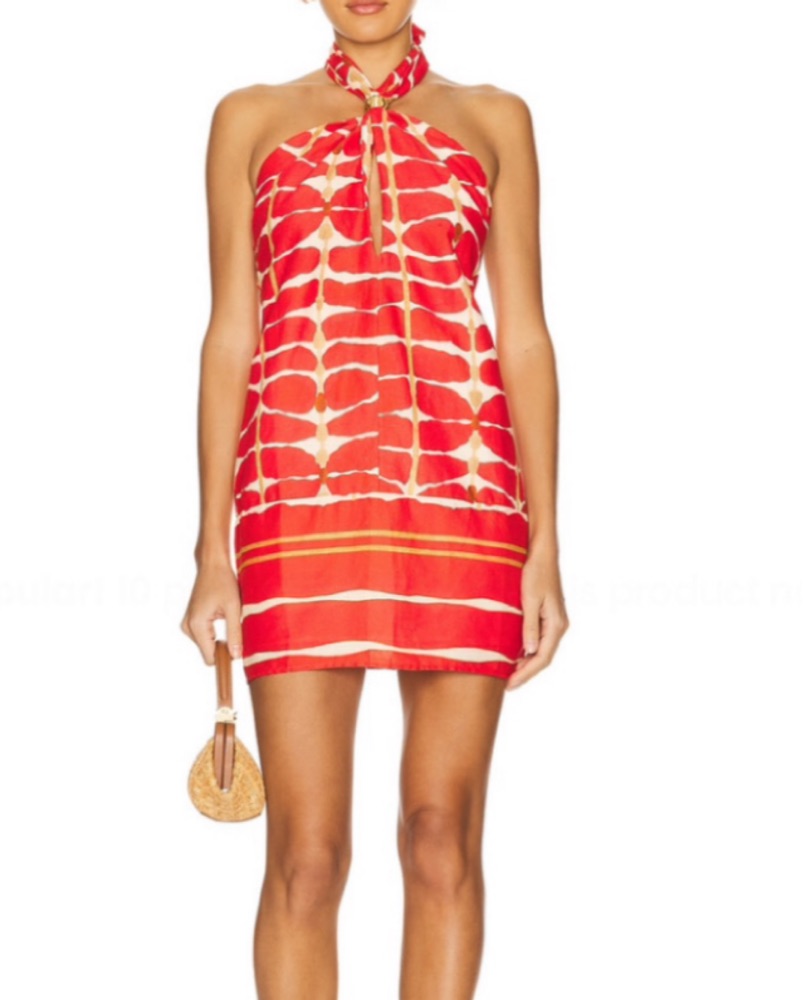 Patterned Halter Mini Dress by Vix Swimwear - Pickle