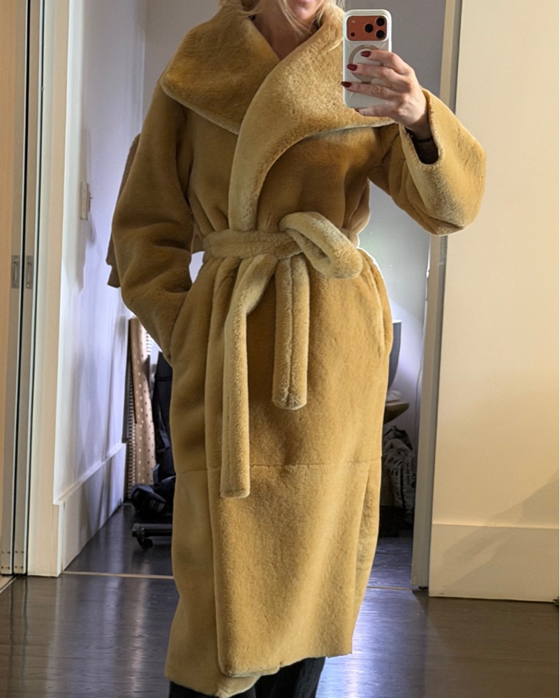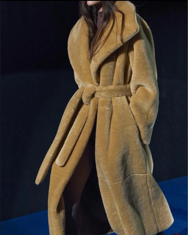 Zara Plush / Faux Fur Belted Coat by ZARA - Pickle