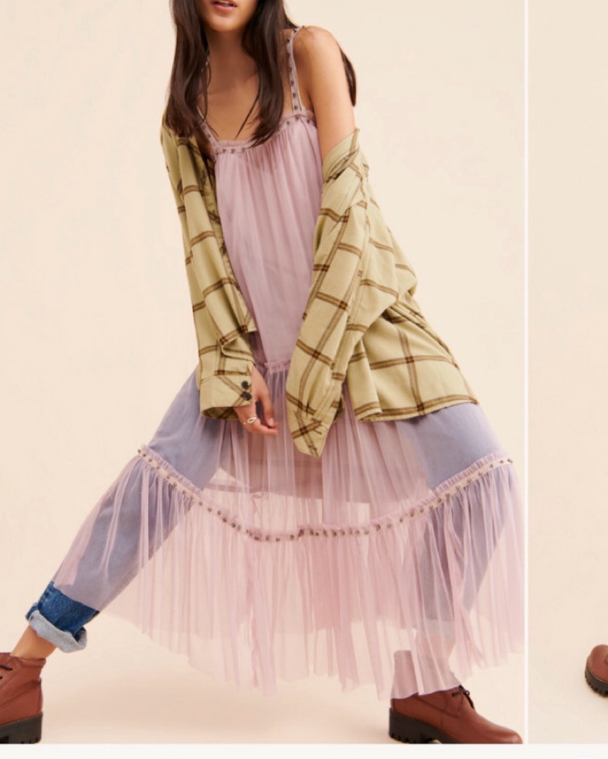 Pink sheer maxi dress perfect as a coverup or trendy sheer dress
