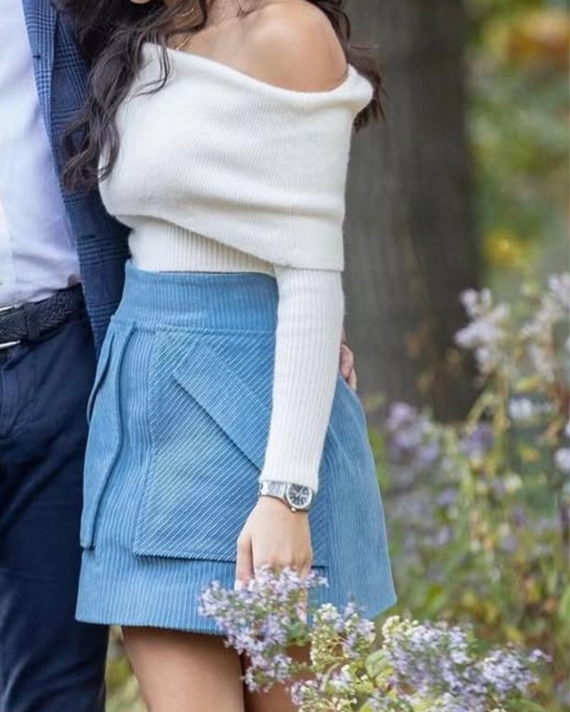 Aknvas Blue Corduroy Mini Skirt, Size 0 by AKNVAS - Pickle