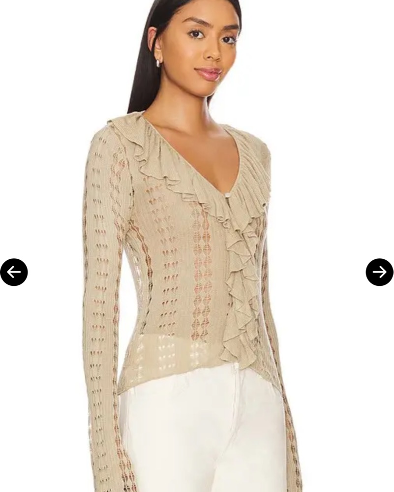 This chic and ethereal knit top with delicate ruffles is perfect for a night out or special occasion.