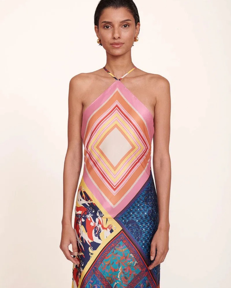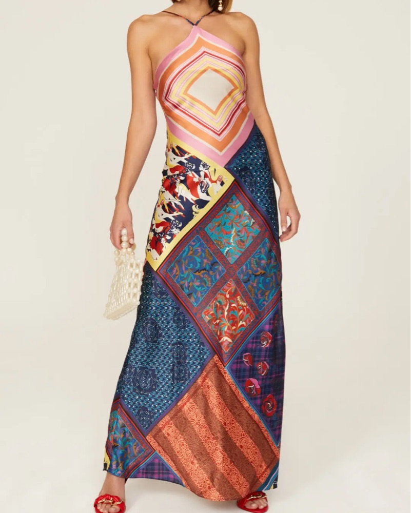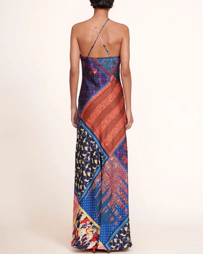 STAUD cubism patchwork maxi dress silk size M