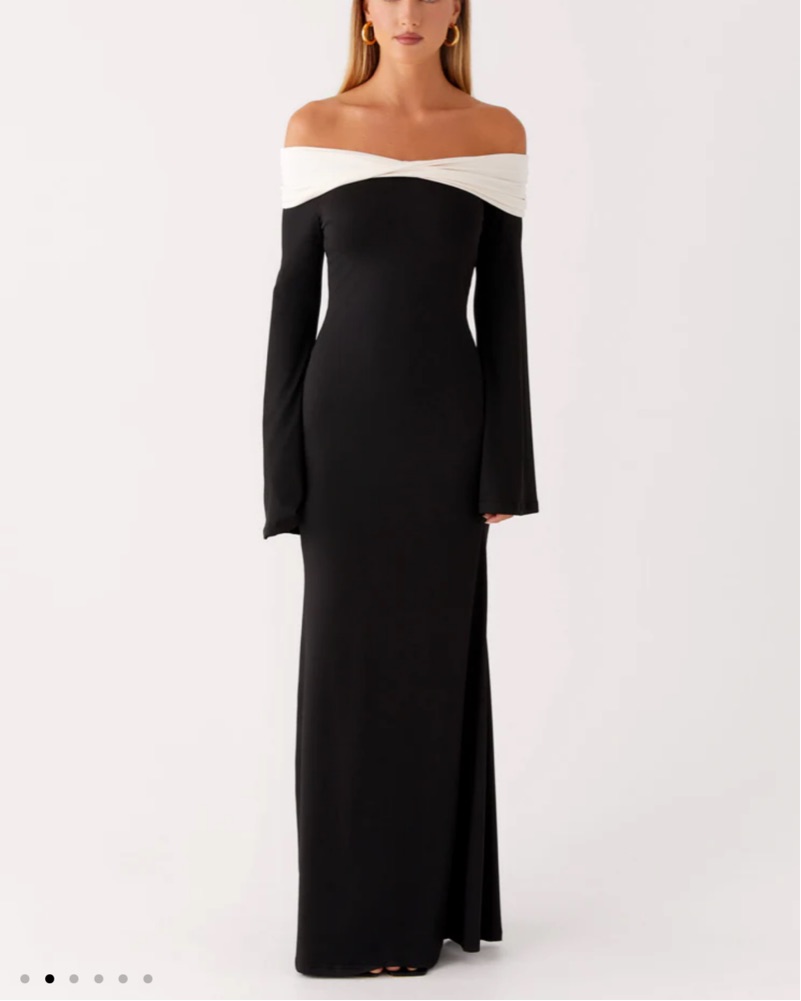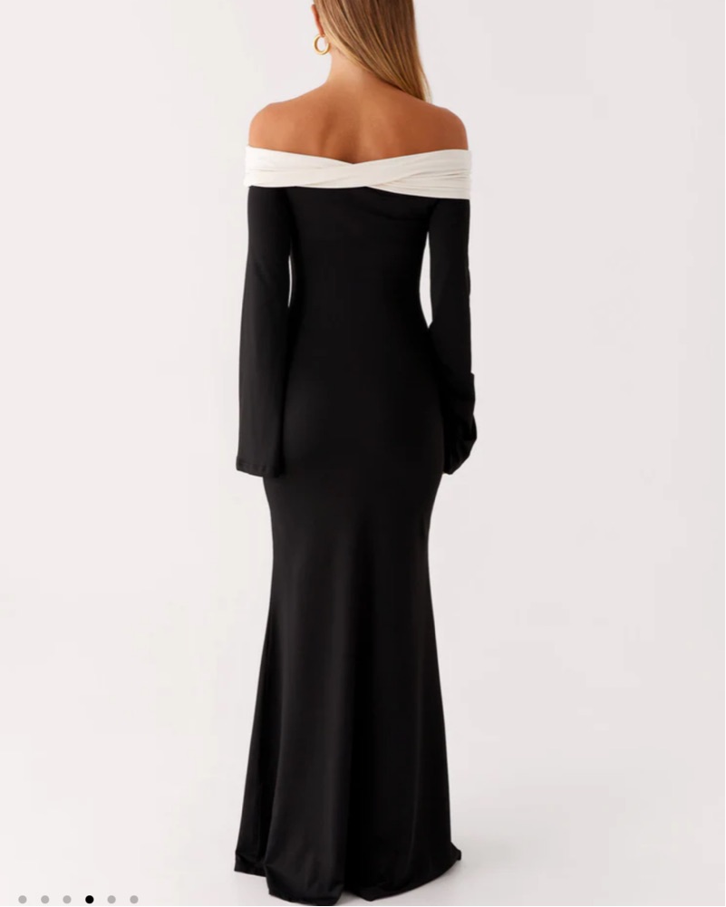 Off-Shoulder Peppermayo Black Maxi Dress