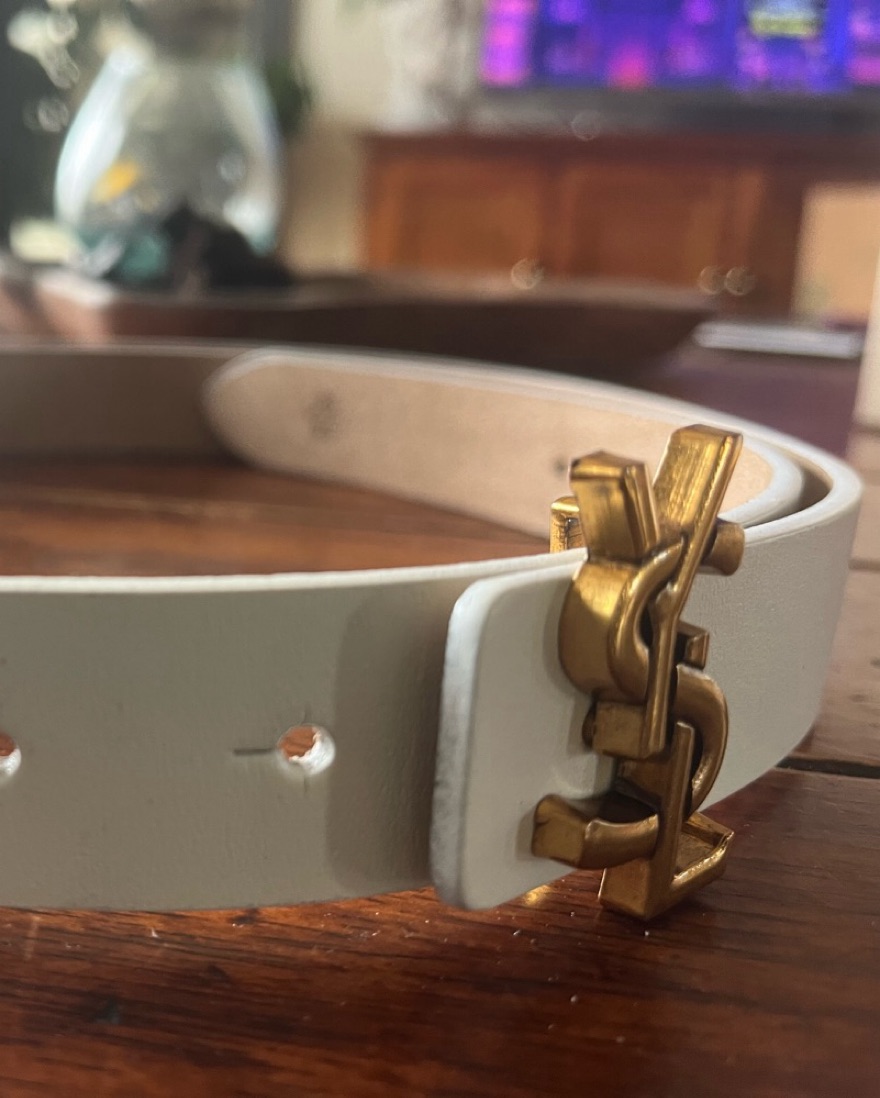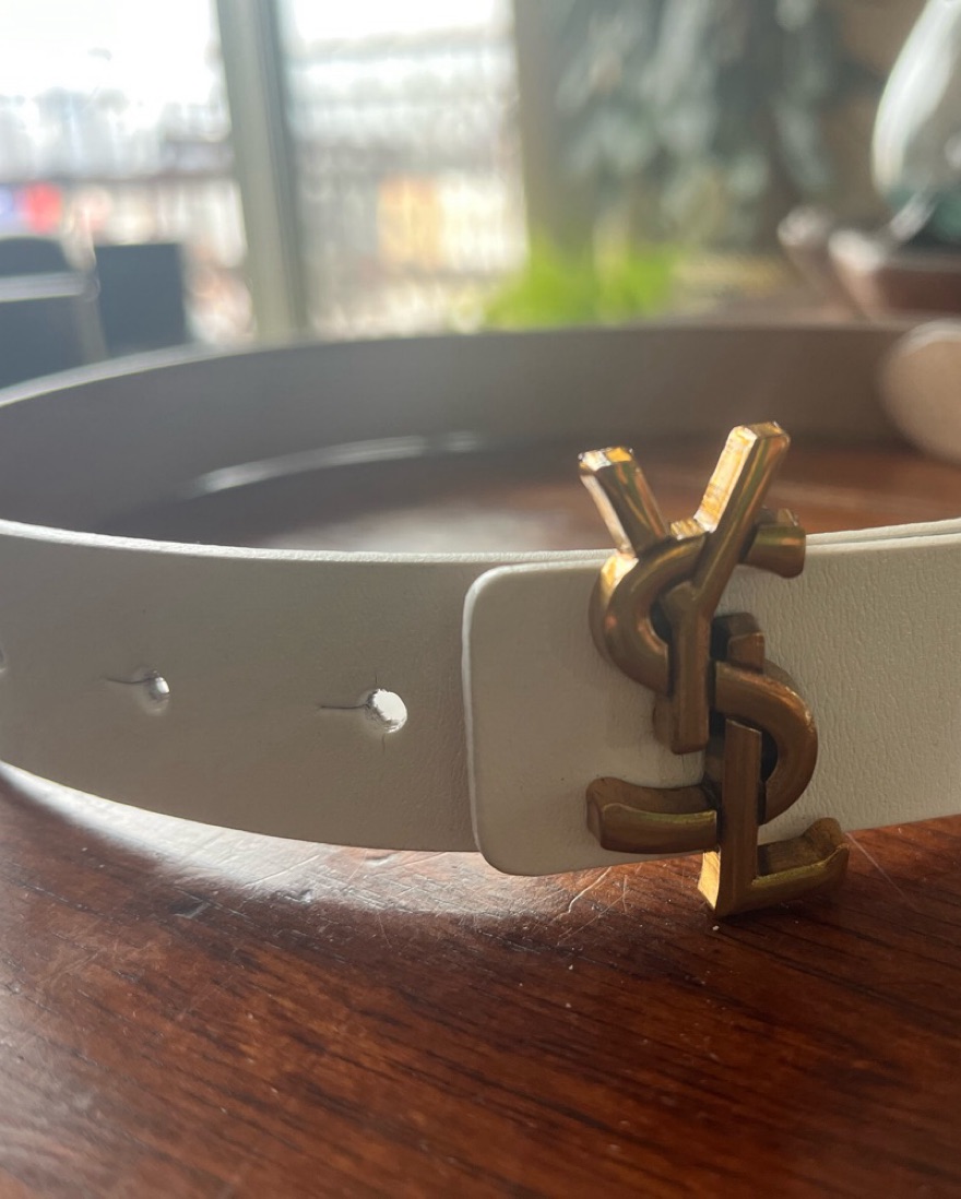 Perfect for casual or dressy occasion. This will fit anywhere from an xs to small. There are several holes there for you can customize the size. Note this was is a vintage white belt and the YSL belt buckle was taken from another old belt and added on to this one by the cobbler.