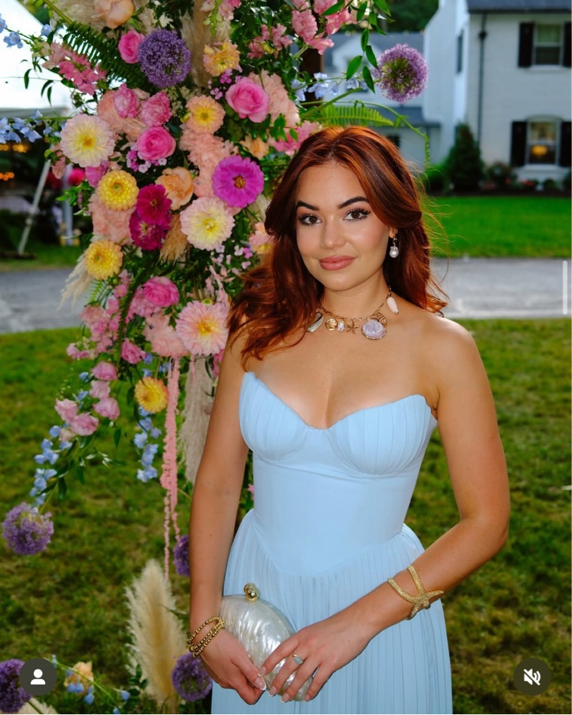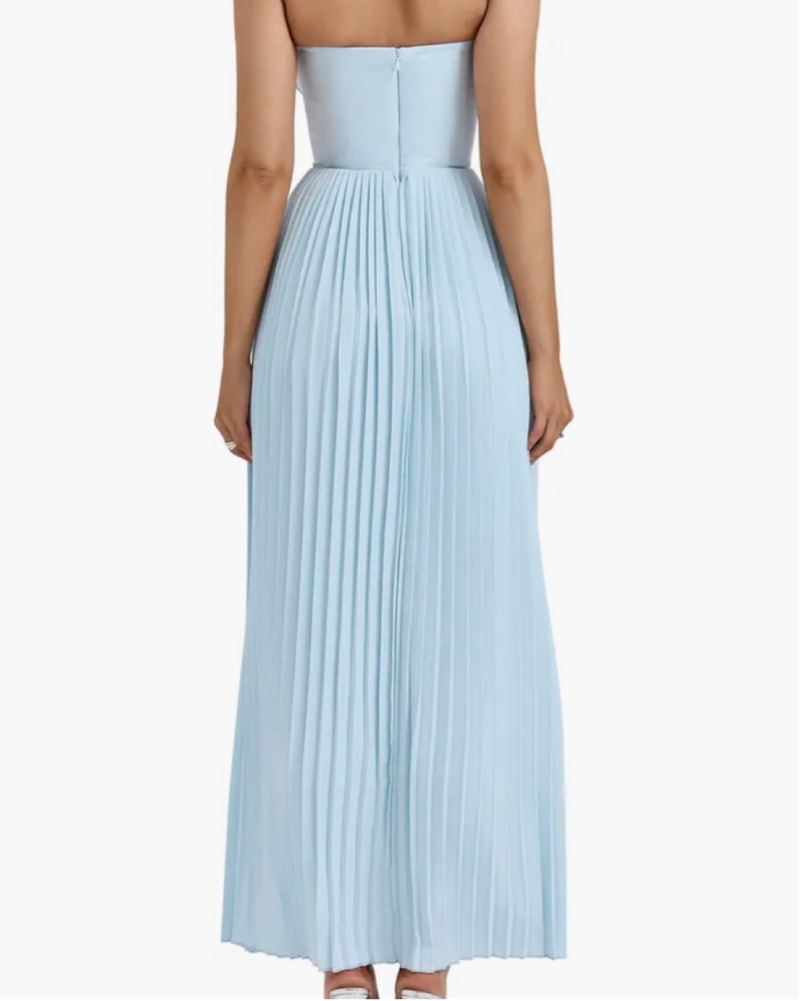 This stunning blue dress is like new (worn once) and is the perfect addition to any wedding or outing.