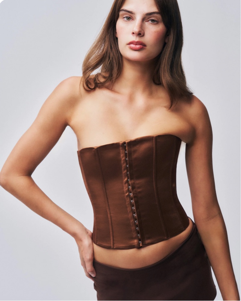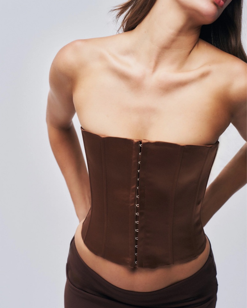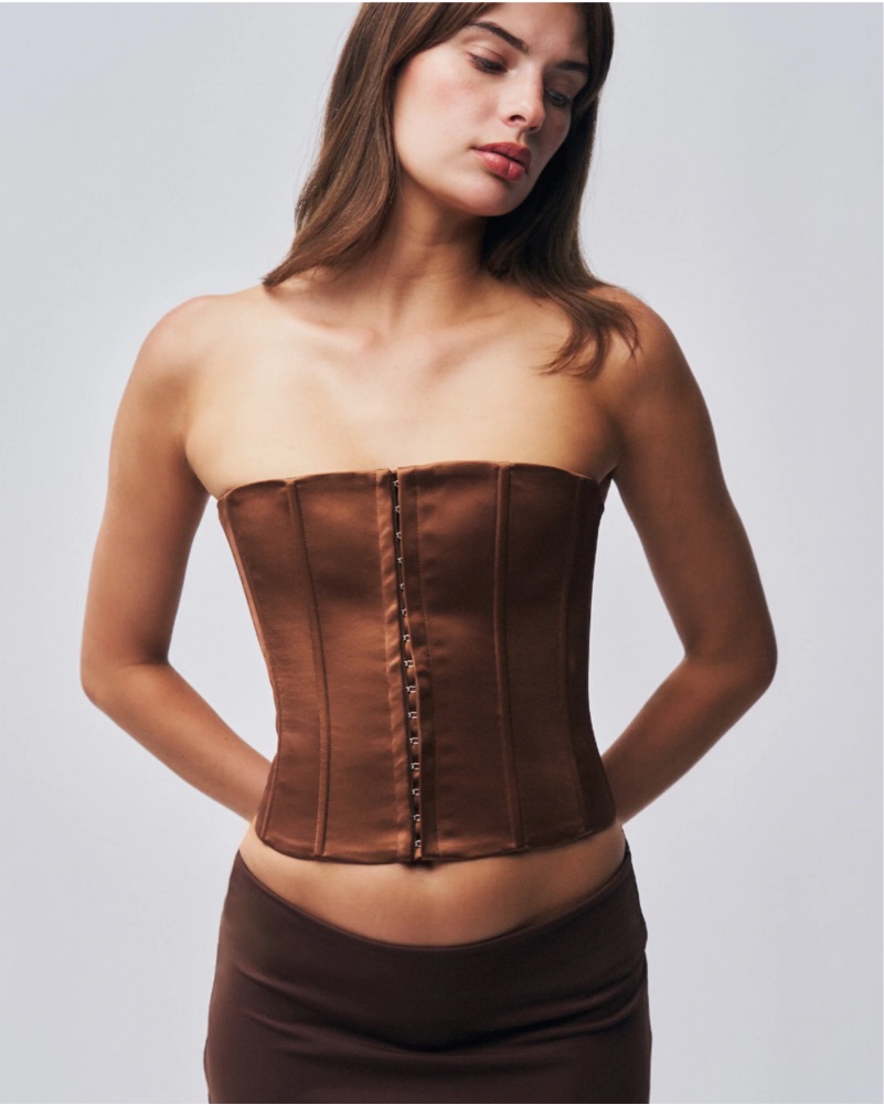 Guizo Brown Satin Corset by Danielle Guizio - Pickle