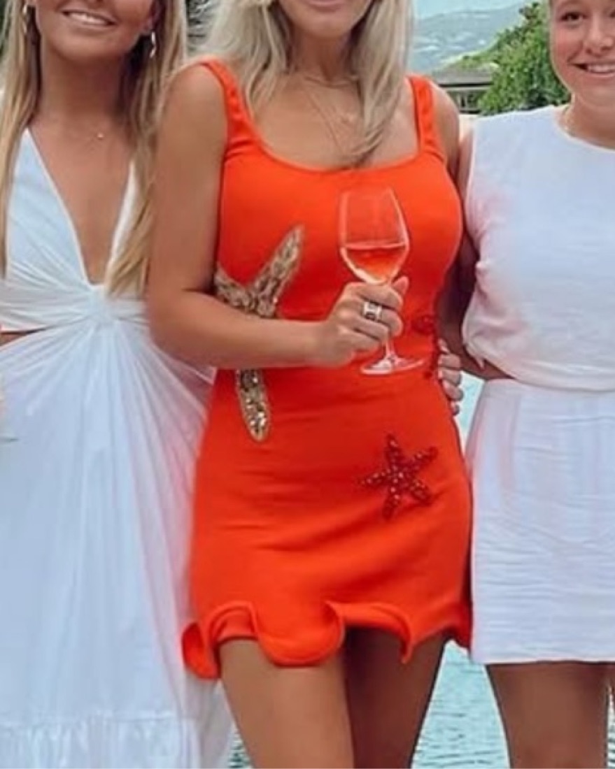 Leslie Amon Orange Beaded Starfish Dress by Leslie Amon - Pickle