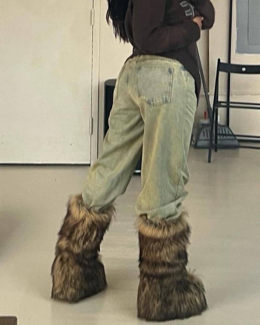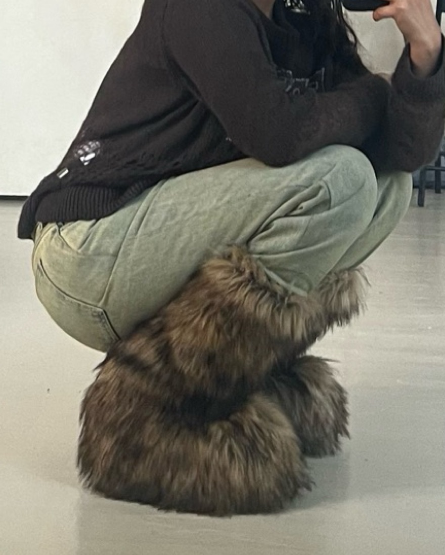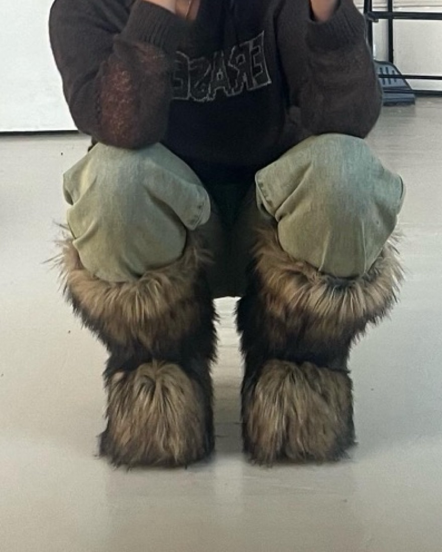 *Great condition* knee high platform furr boots, comes with the straps as well in case youf like them with the boots Size 7