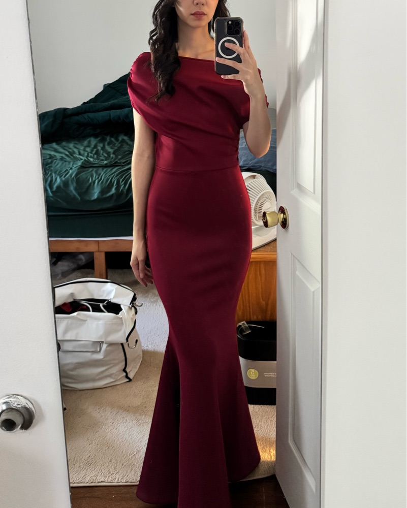 Red off the shoulder long formal dress | Perfect for weddings and formal events | It’s more burgundy/maroon than red | Very stretchy and thick material | Only worn once!