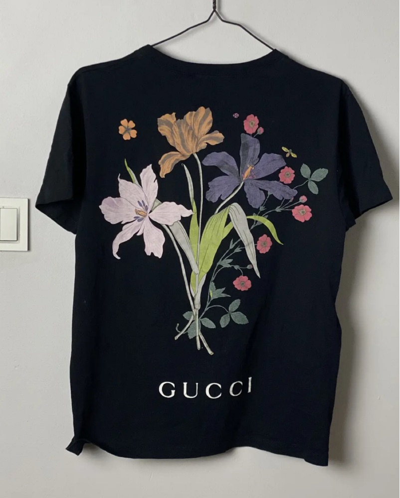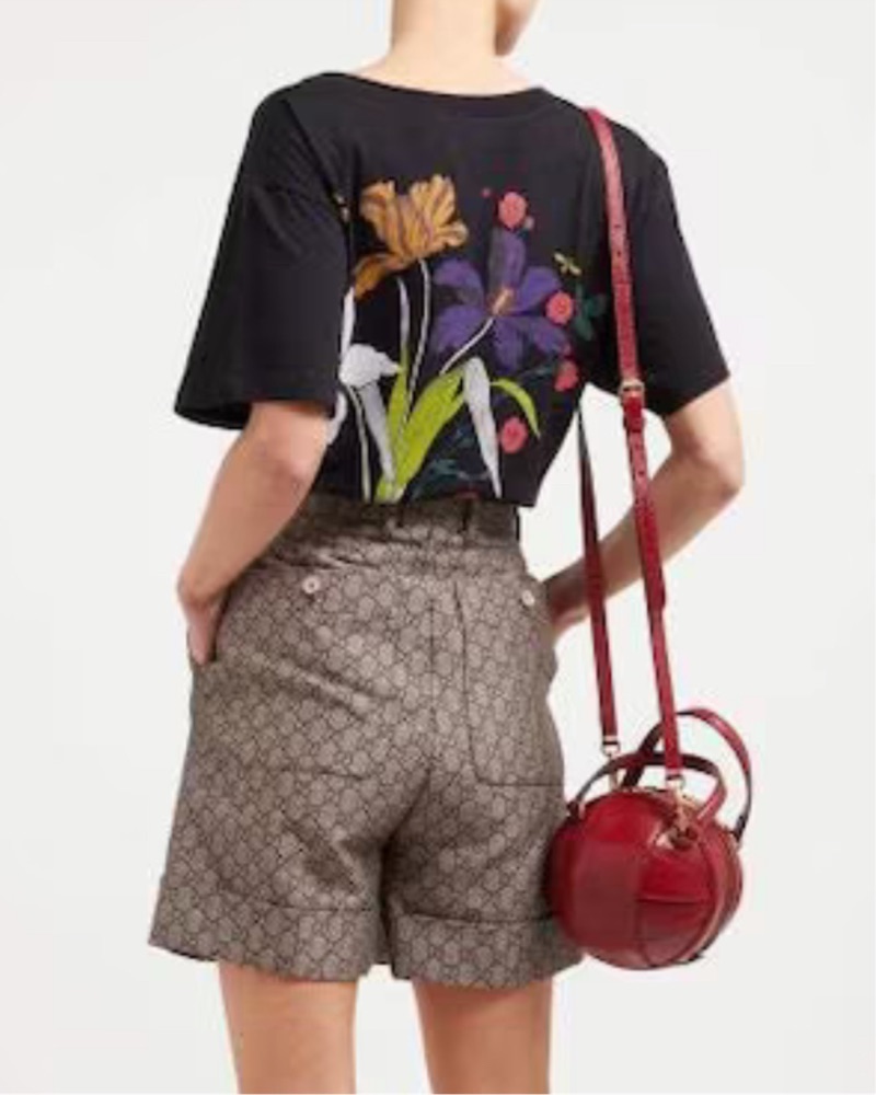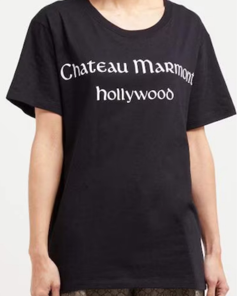 Alessandro Michele references the iconic Hollywood hotel, the Chateau Marmont, for the print seen across the front of this black T-shirt from Gucci. Cut from soft cotton, it features a vibrant floral and logo print to the back.