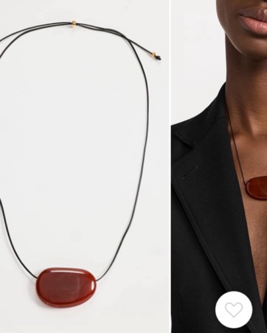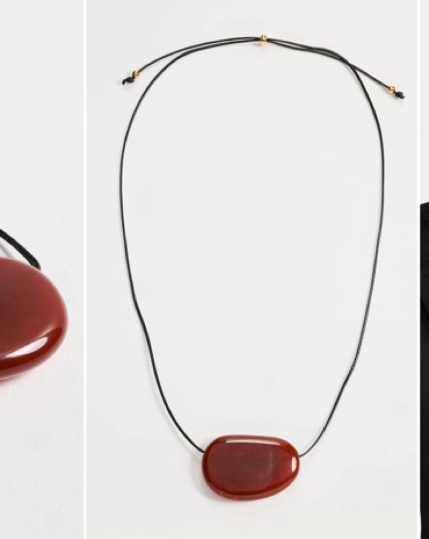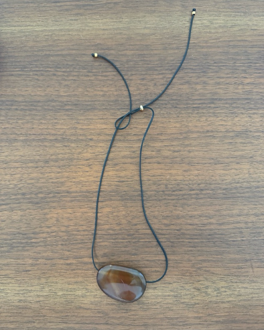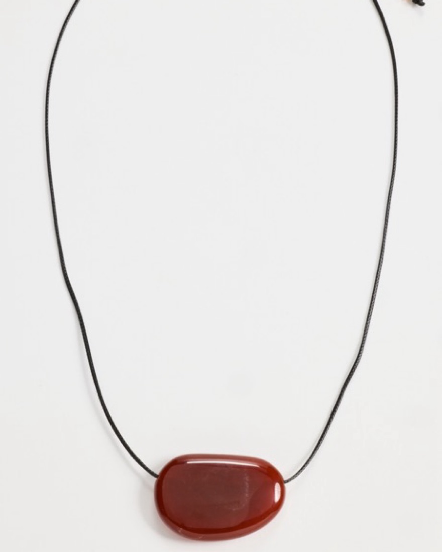Agate stone, adjustable wax cord. Color deep burgundy / maroon. Stone is more dark red like the stock photos - I think the lighting is just off in my pic.