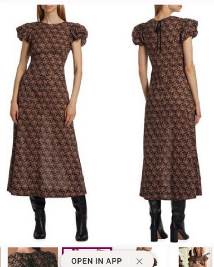 DÔEN Rhodia Dress ~ Puff Sleeve A-Line Maxi Noir Forest Floral Print