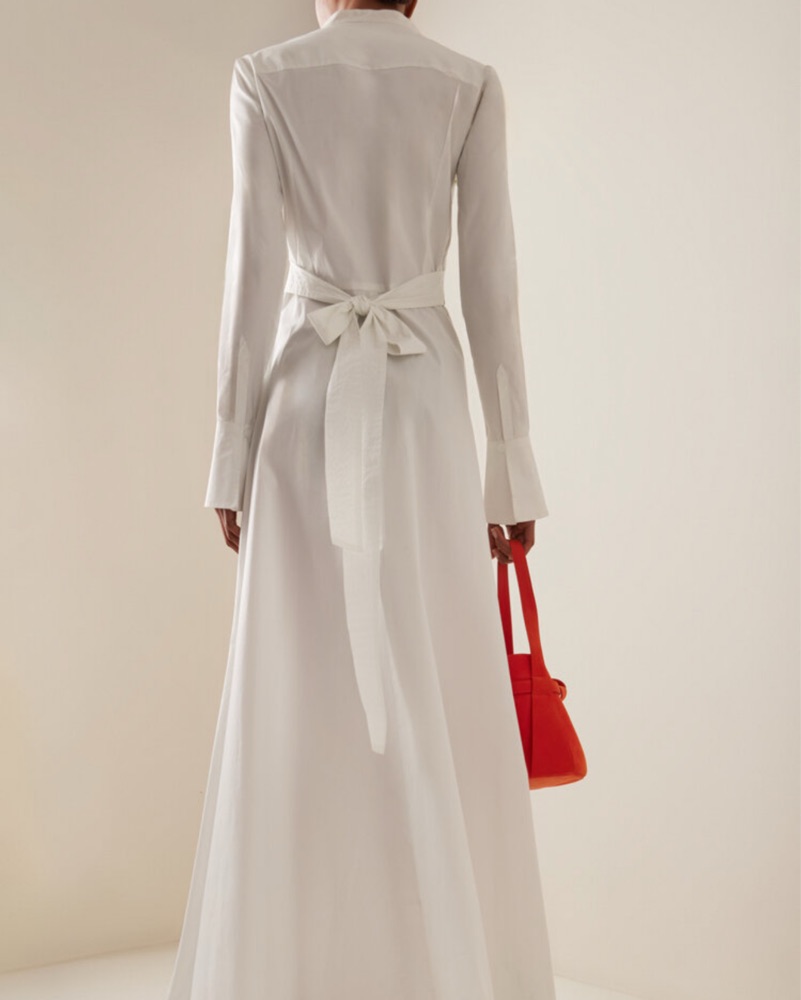 Slightly see through. Dress is on the longer side, would need to wear heels/have some height so it doesn’t drag. Must have dry cleaned after wear.