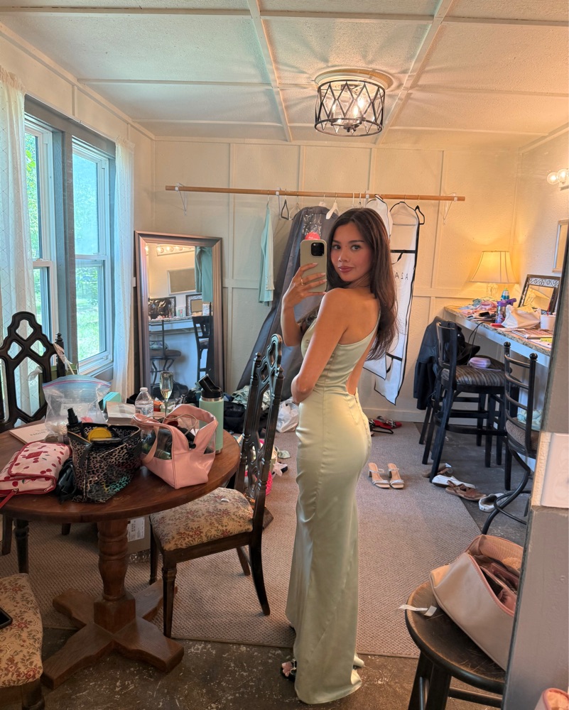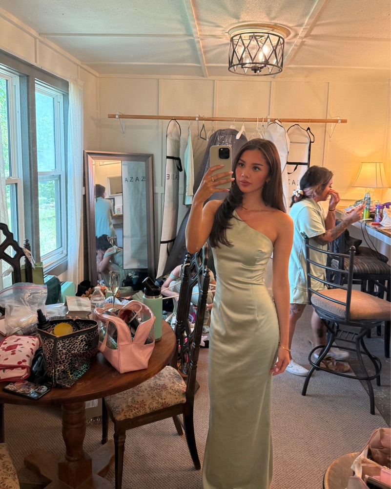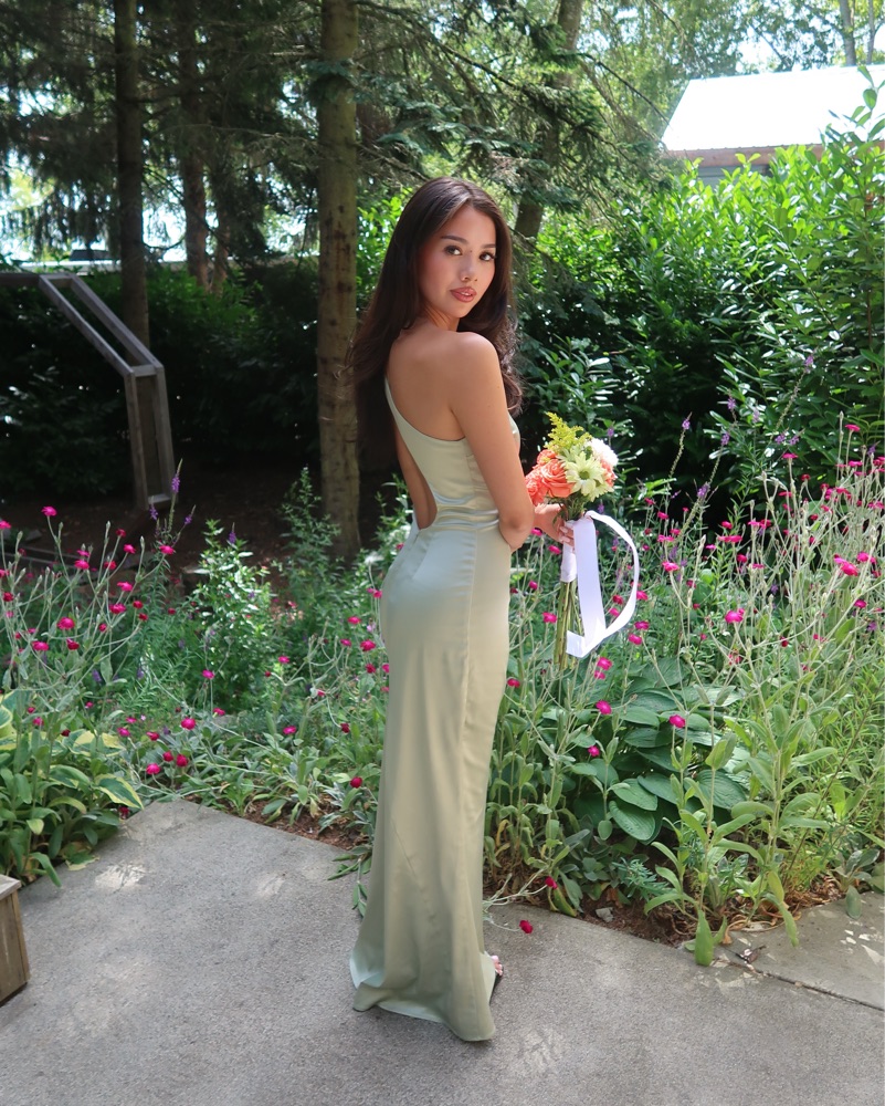 The perfect sage bridesmaids dress or wedding guest dress! I had this tailored and hemmed to fit and I am a size 0 and 5’3 for reference. Could fit a XXS-XS (the actual size on the tag is XXS). I am wearing 3 inch heels. Please see the first and last three photos for the dress on me.