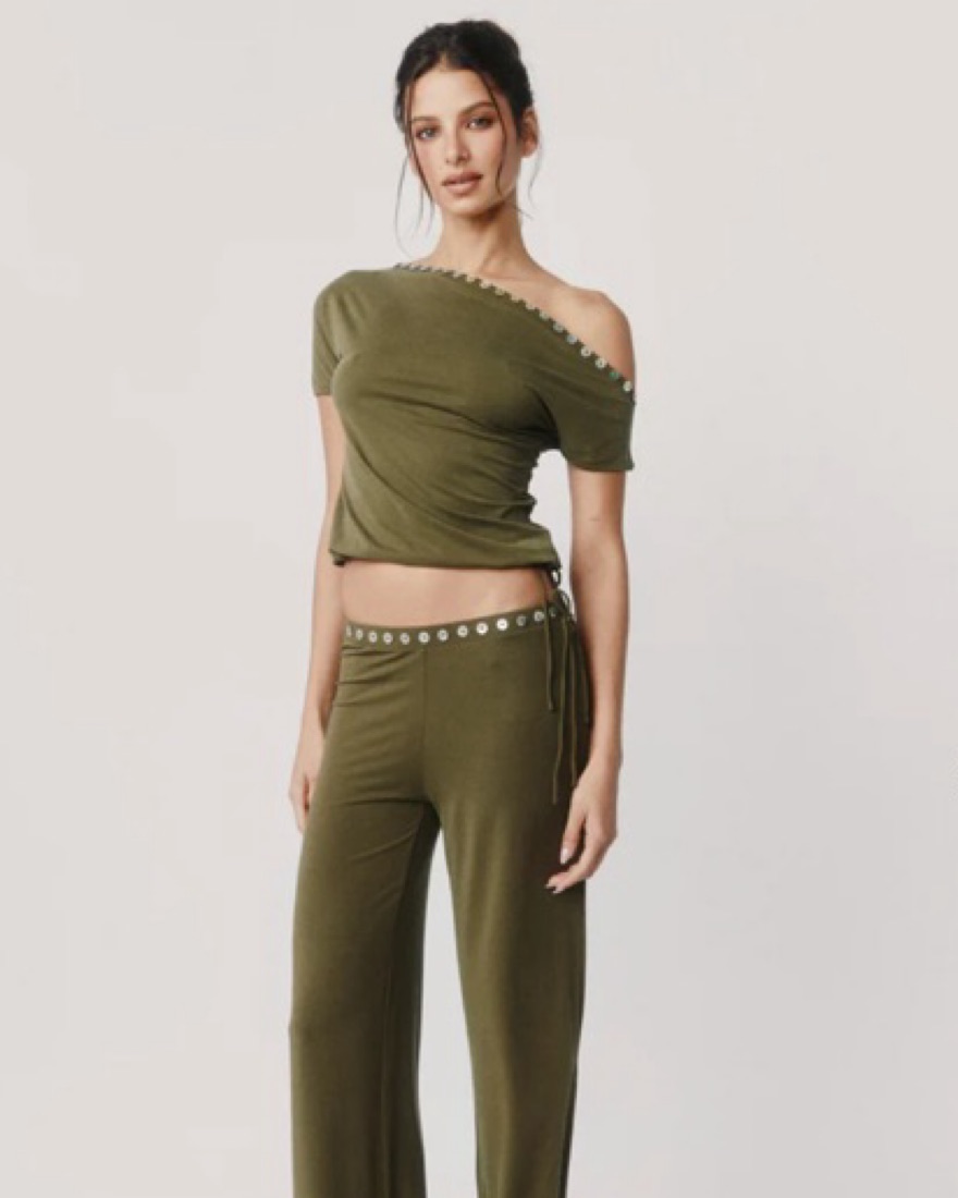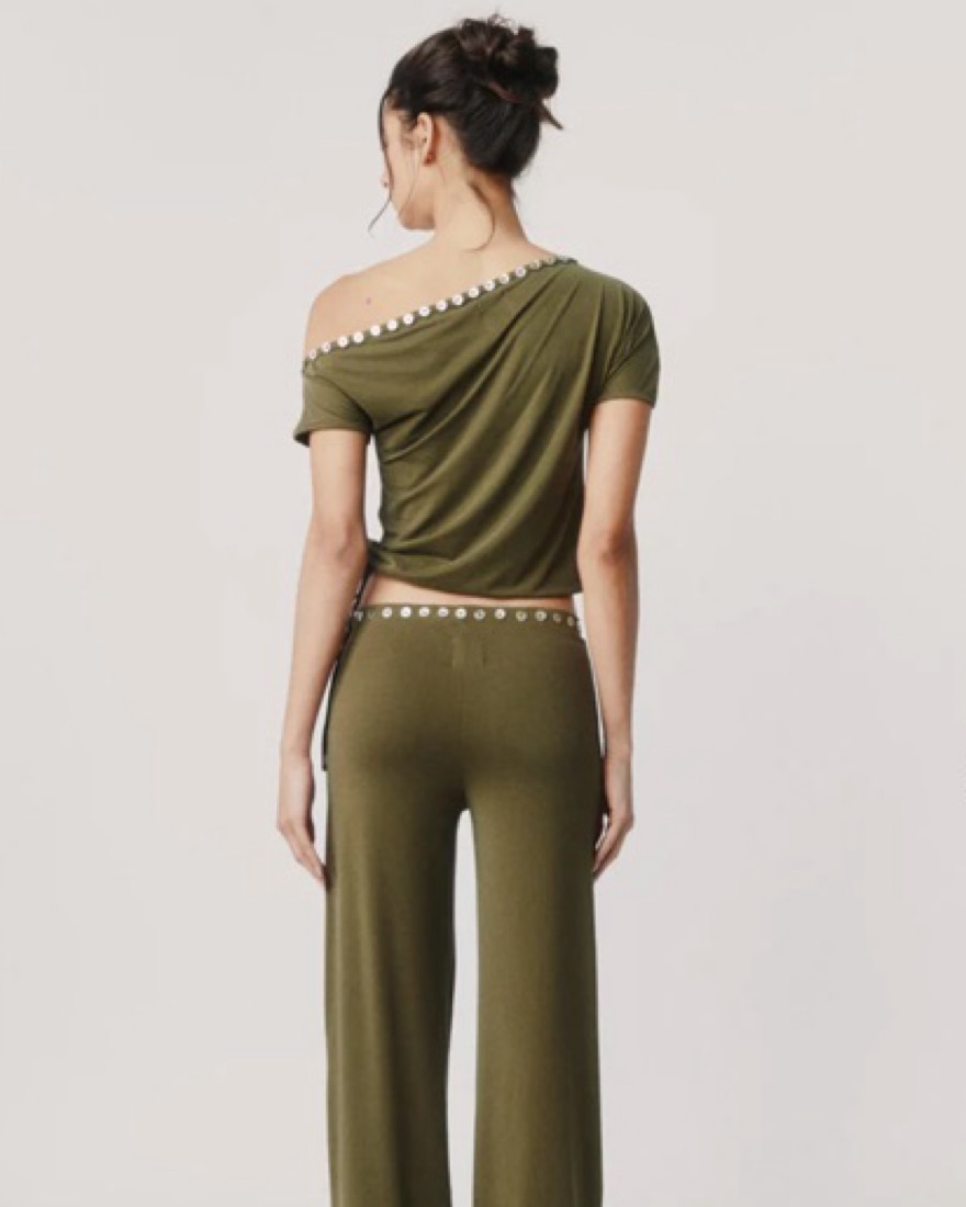 Matching Benny top and pants from With Jean in the khaki/olive green colorway. Can be rented separately or as a set. Super comfy and flattering! Please do not wash!