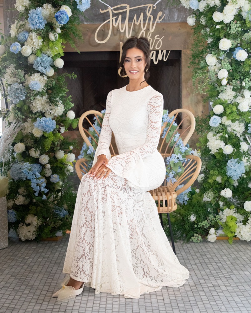 Wore this for my bridal shower 💙 Perfect for bridal - Form fitting - comfortable - illusion sleeves and skirt - fits more like a small than an XS