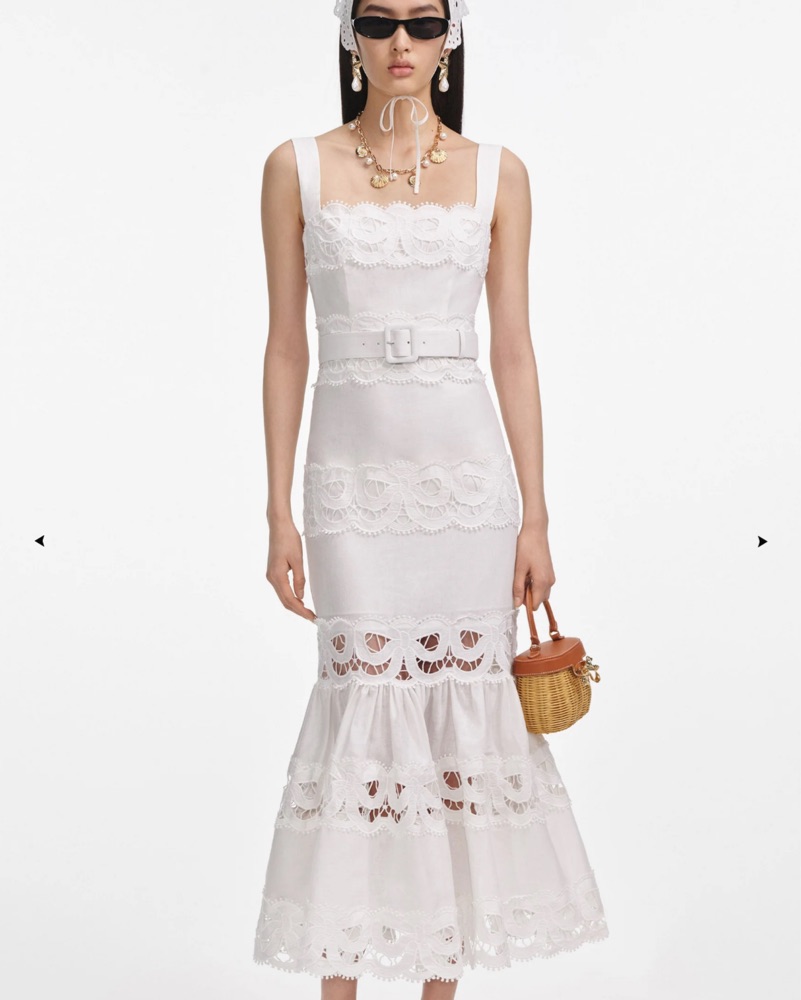 Self portrait white lace linen midi dress! With detachable belt