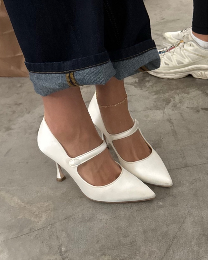 Size 37 perfect bridal manolos. Satin material is very delicate!! Very minor marking since purchased at vintage show (they are current season/evergreen). Price matches delicate nature.