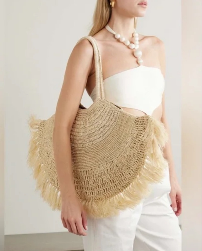 Cult Gaia raffia fringe tote bag perfect for vacation. I may be open to shipping, it’s just such a large item it may be a bit difficult to package but I’m open to offers!