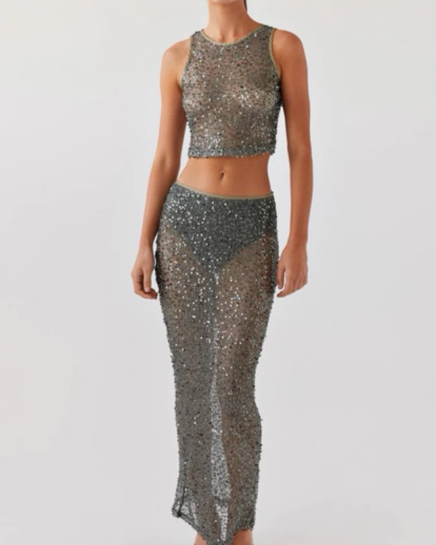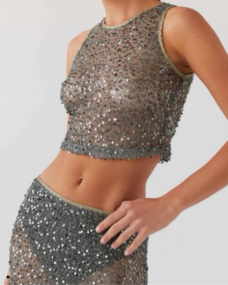 Sheer Sequin Set in Olive by Peppermayo - Pickle