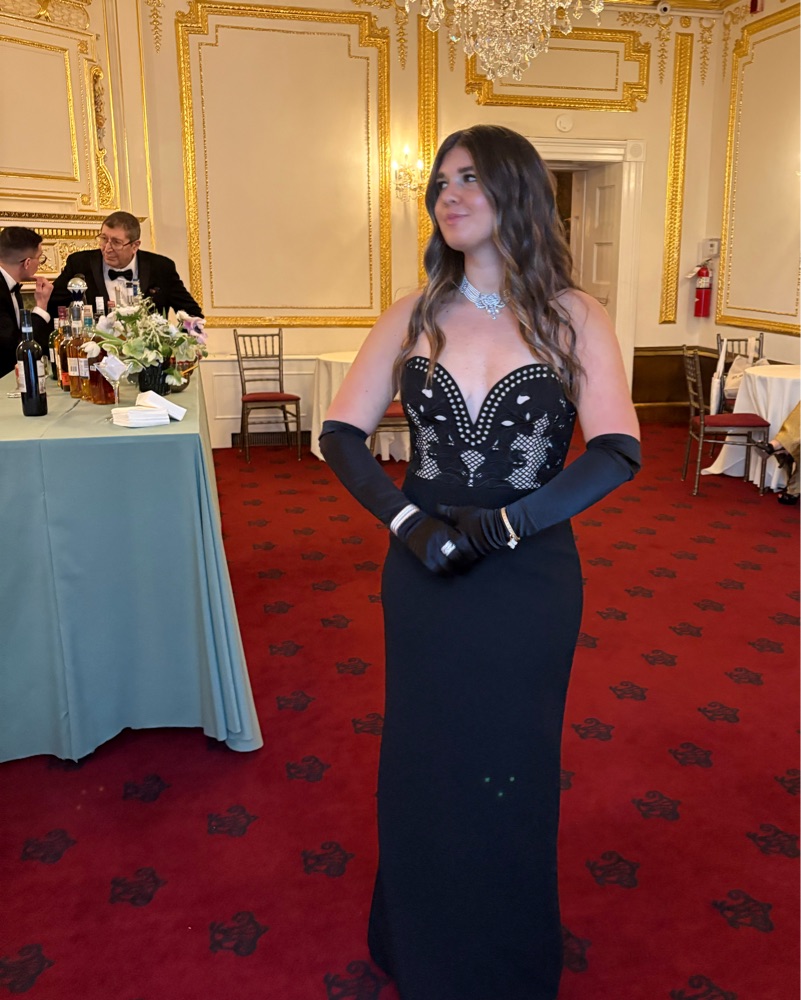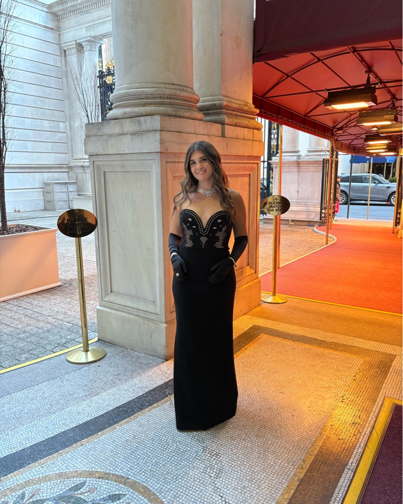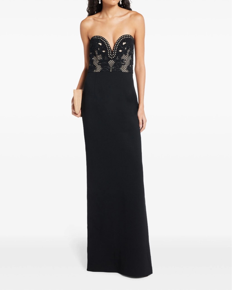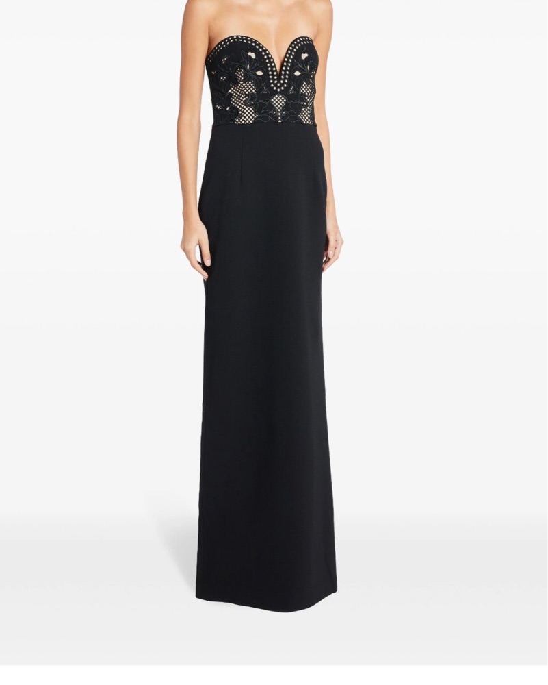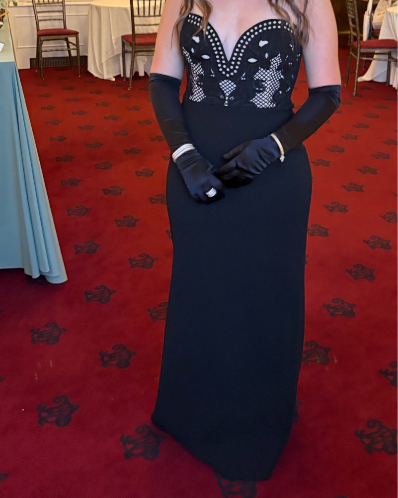 This black gown has lace on top and sweetheart neckline. Rebecca Vallance. I wore it with gloves!size 10.