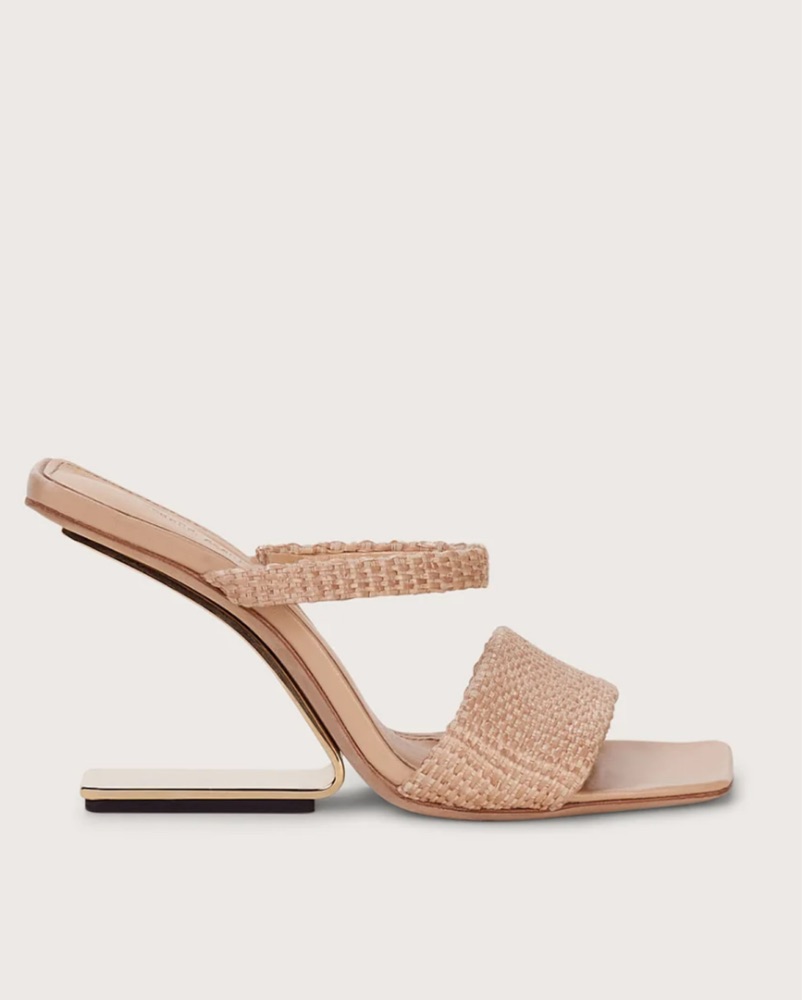 A thoughtful geometric heel meets a simplistic sandal with the Rene. The architectural lines of this shoe were designed with thoughtful intention, while the gorgeous suspended heel adds intrigue and femininity. This sandal is eye-catching and seemingly majestic, as you seemingly float. Great conditi