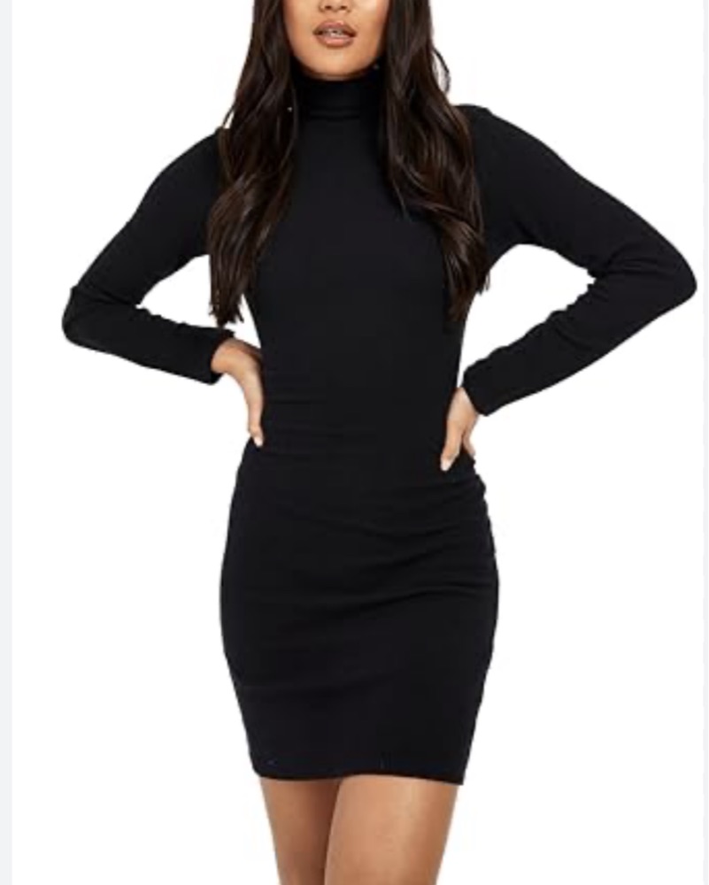 Black Turtleneck Knit Mini Dress