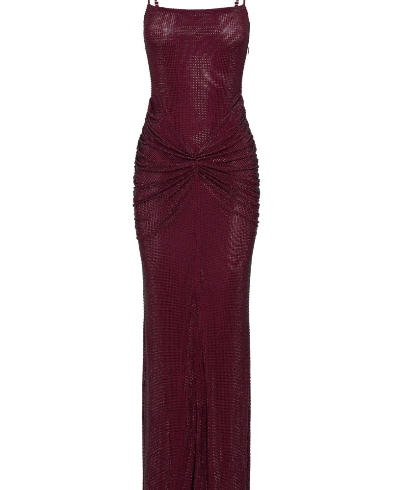 Mahogany - perfect condition. Make an unforgettable entrance with the ROISIN Diamante Satin Maxi Dress, a stunning blend of glamour and elegance. Featuring a sleek straight neckline and a daring low-cut back, this dress exudes sophistication from every angle. Adjustable straps ensure a perfect fit,