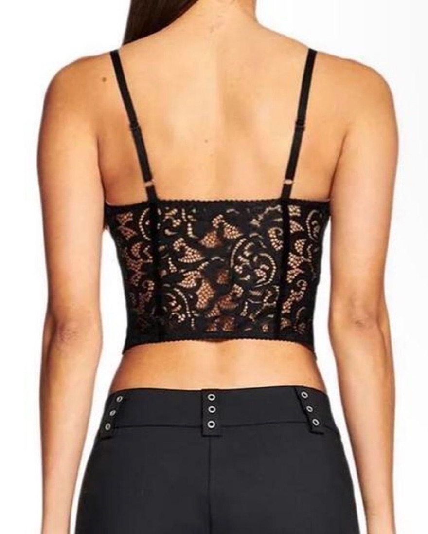 Thin, adjustable shoulder straps, Sweetheart neckline with lace trim detail along the top edge, Lace back, Very light padded bust cups with boning, Bodycon fit and cropped length
