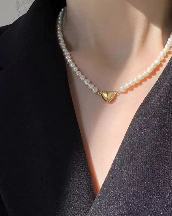 Elegant Pearl Necklace with Heart Pendant by Lusanet Collective - Pickle