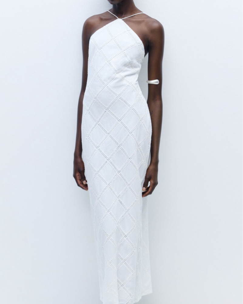 Embroidered White Halter Dress {M} by MANGO - Pickle