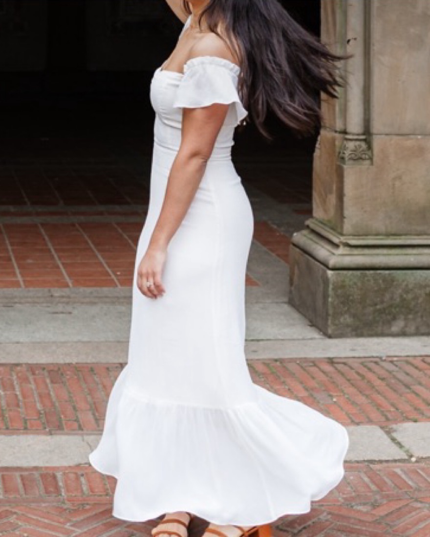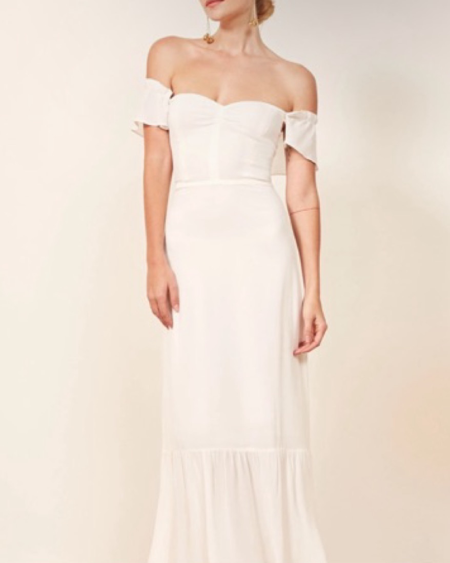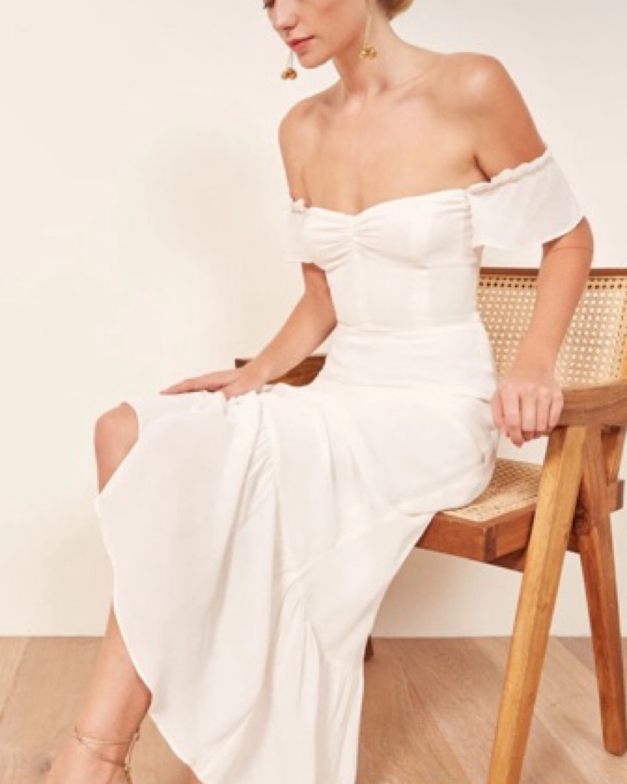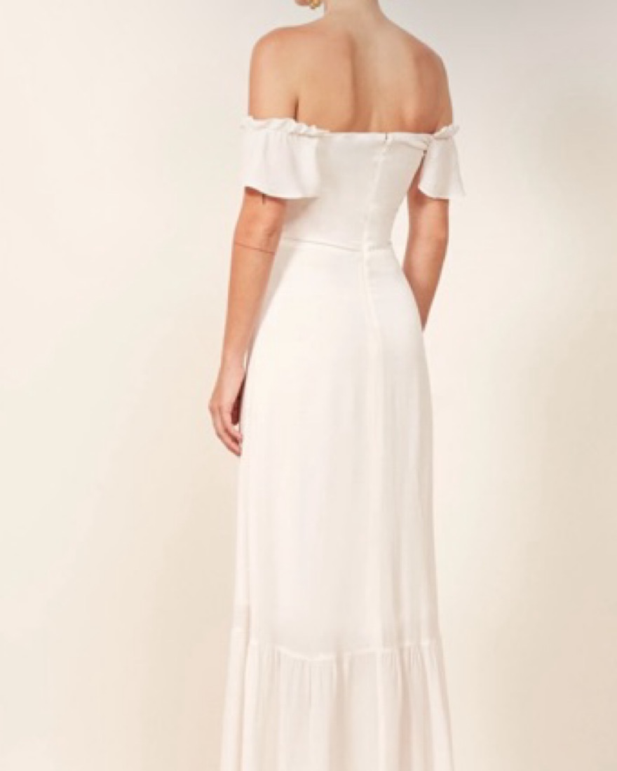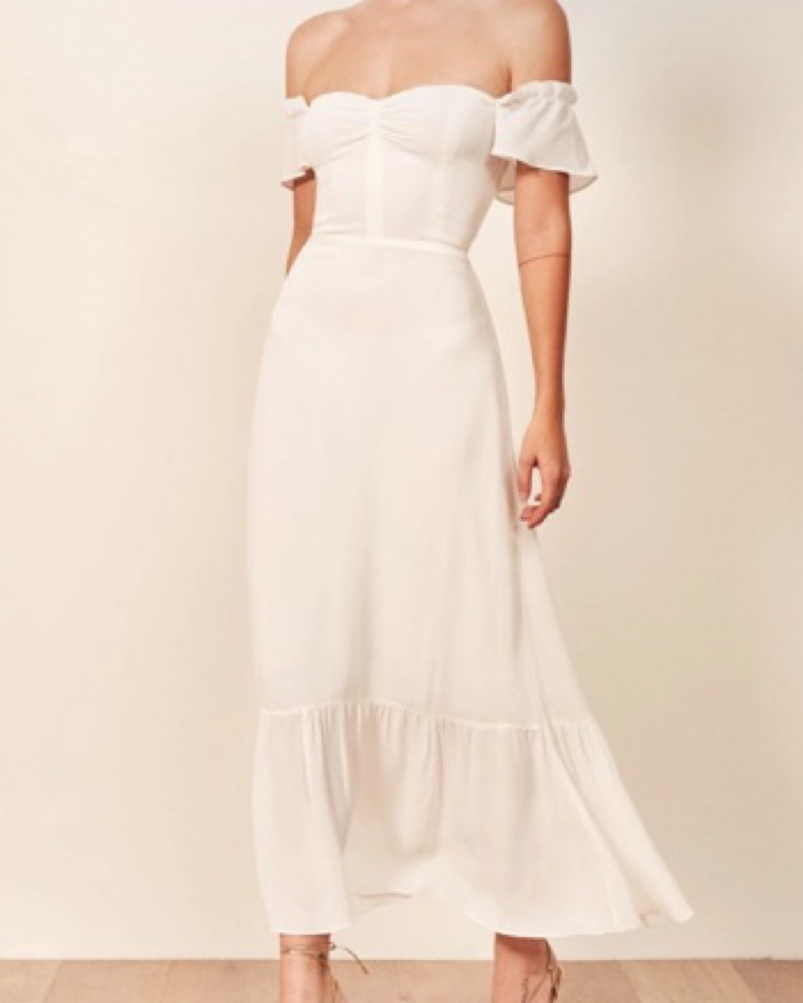 Perfect summer, engagement shoot, or welcome party dress! Beautiful fabric and flattering neckline. I’ve gotten so many compliments on this dress during our engagement shoot. Dress is still on Reformation for full price!