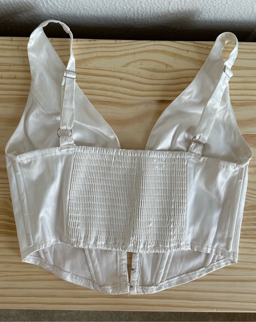 Quality white silk corset top from Glassons! Eyelet closures in the front with adjustable straps and expandable back rutching. Corset features ribbing to help you stay snatched. AUS size 10 but i usually wear a size four US