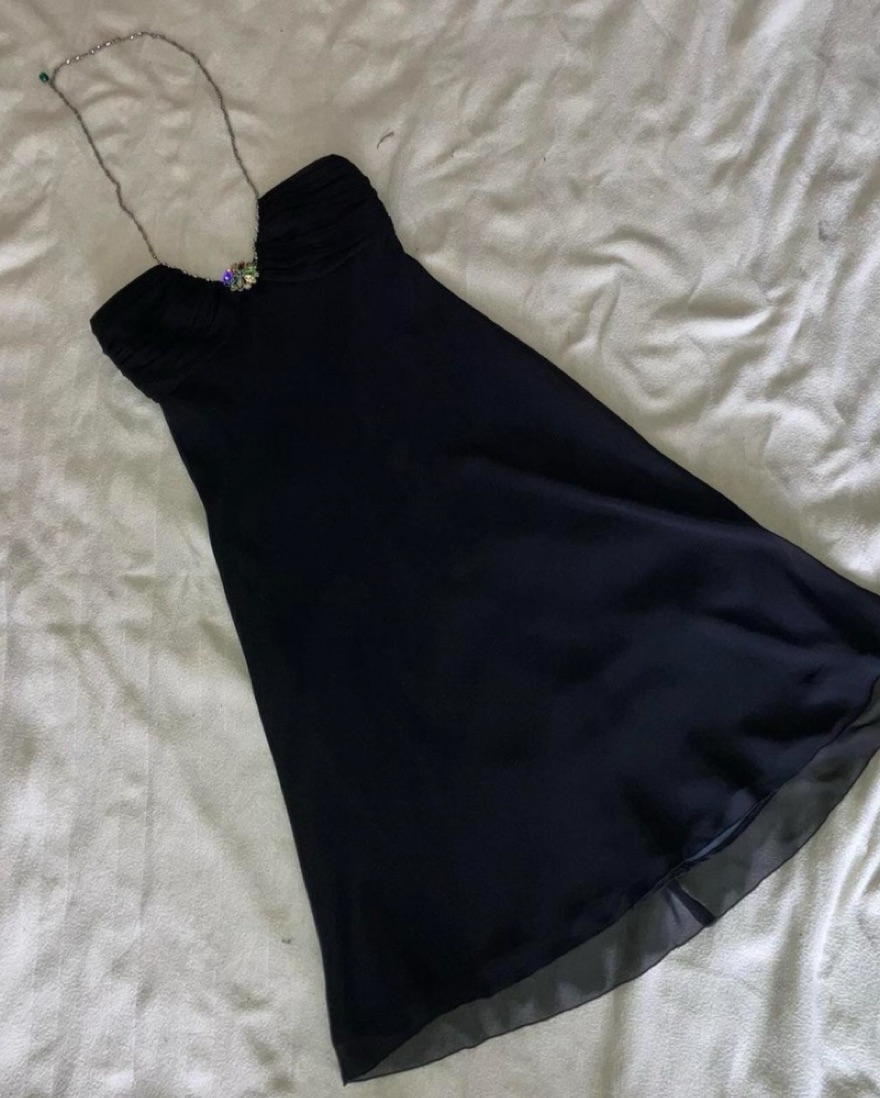 Vintage Rhinestone Halter Dress by Cache - Pickle