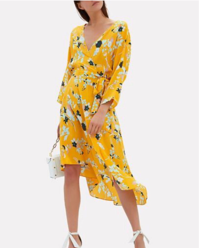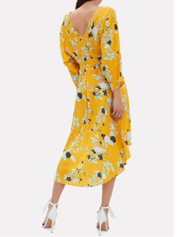 Diane Von Furstenberg Eloise Asymmetric Mini Dress in size XS in very good condition- worn once. A sunny floral print puts an on trend finish to this elegant wrap dress. V neck. Worn by Sandy B on tv ✨✨✨