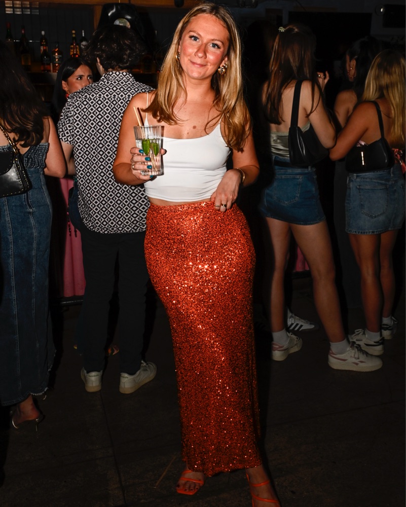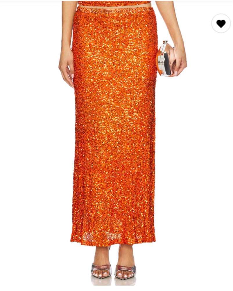 orange sequin maxi skirt, super cute!!! im normally a /size 2-4 and the 4 fit perfectly. delicate so please handle with care!