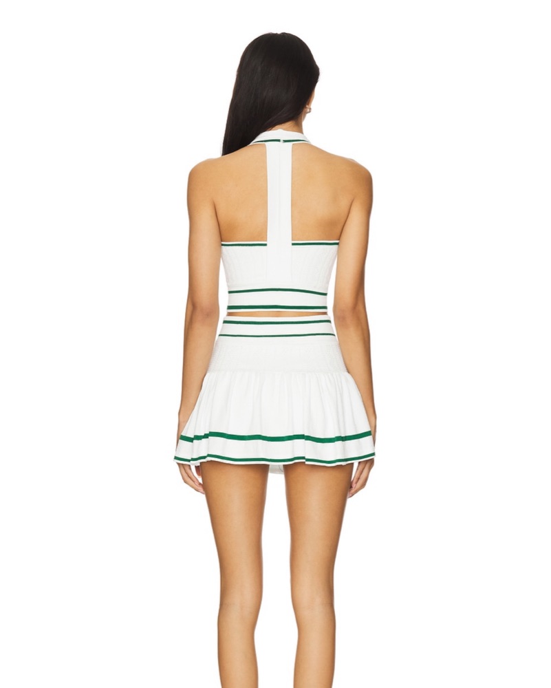 This set has been sold out for months. White with green tennis set. Perfect for a bachelorette, Hamptons weekend or a workout.