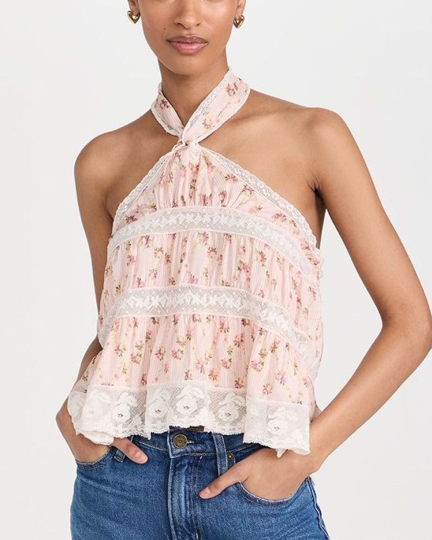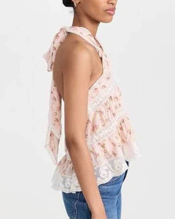 Halter neckline with ties at back