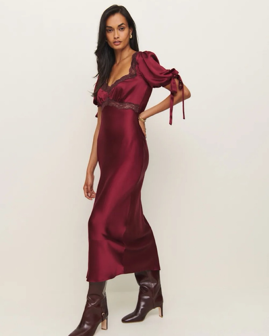 Stella Silk Dress in Crimson Clover. Piece from the Kacey Musgraves x Reformation collab. Gorgeous dress, perfect for a wedding or date night. Worn once! TTS