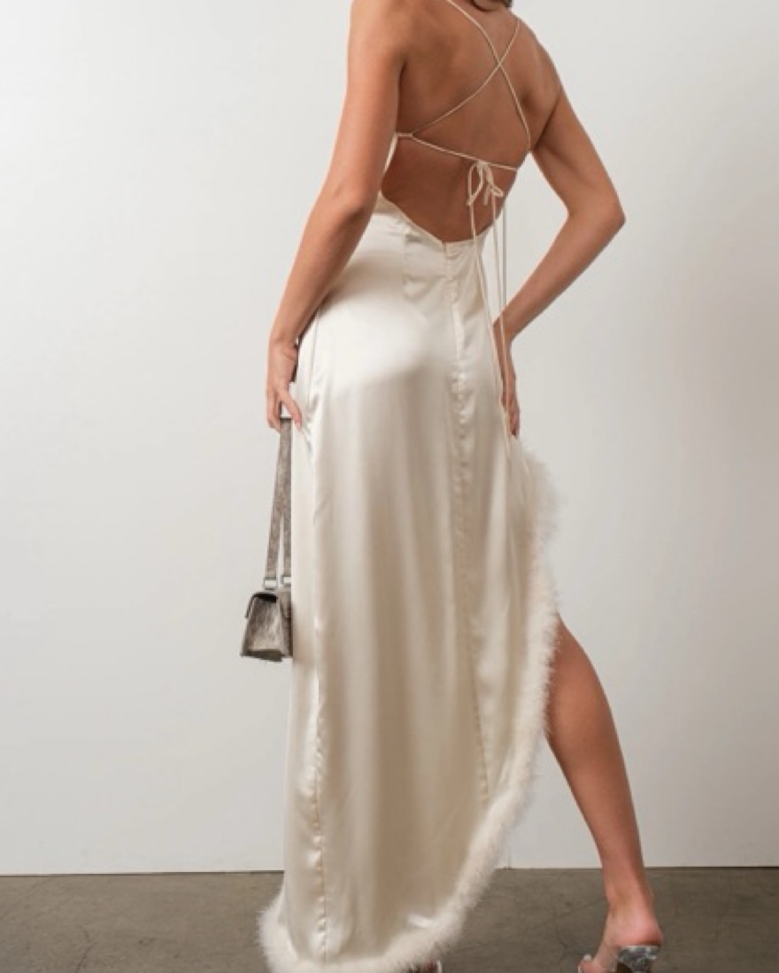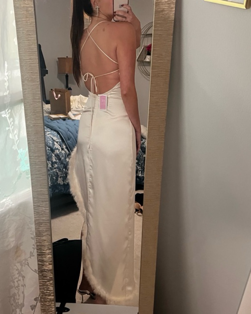 Cutest silky off white dress, zipper with open back