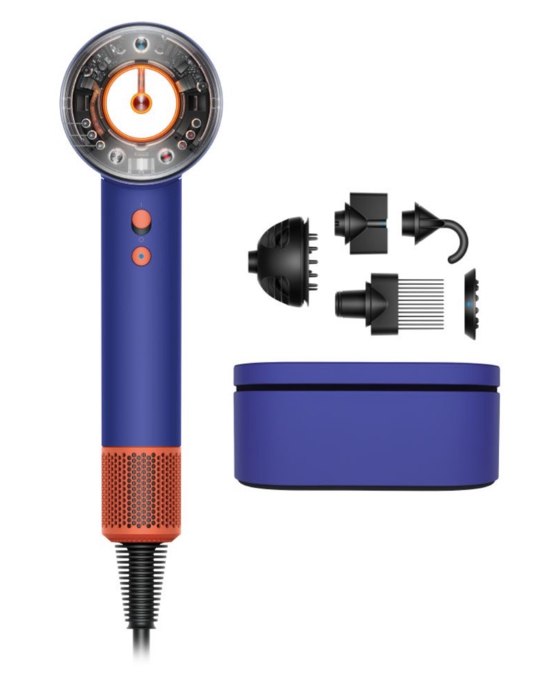 The Dyson Supersonic Nural™ hair dryer is an intelligent styling tool featuring Nural™ sensors that automatically adjust heat to protect the scalp, reducing temperature as it nears the head. It offers intelligent attachment learning, a pause-detect motion sensor, and a translucent end cap, designed