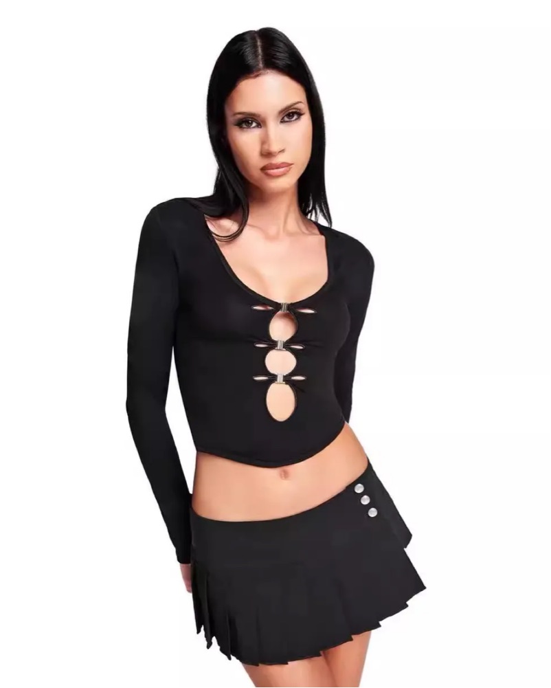 Wide waistband featuring 3 silver press studs detail on side hip - Button closure for entry