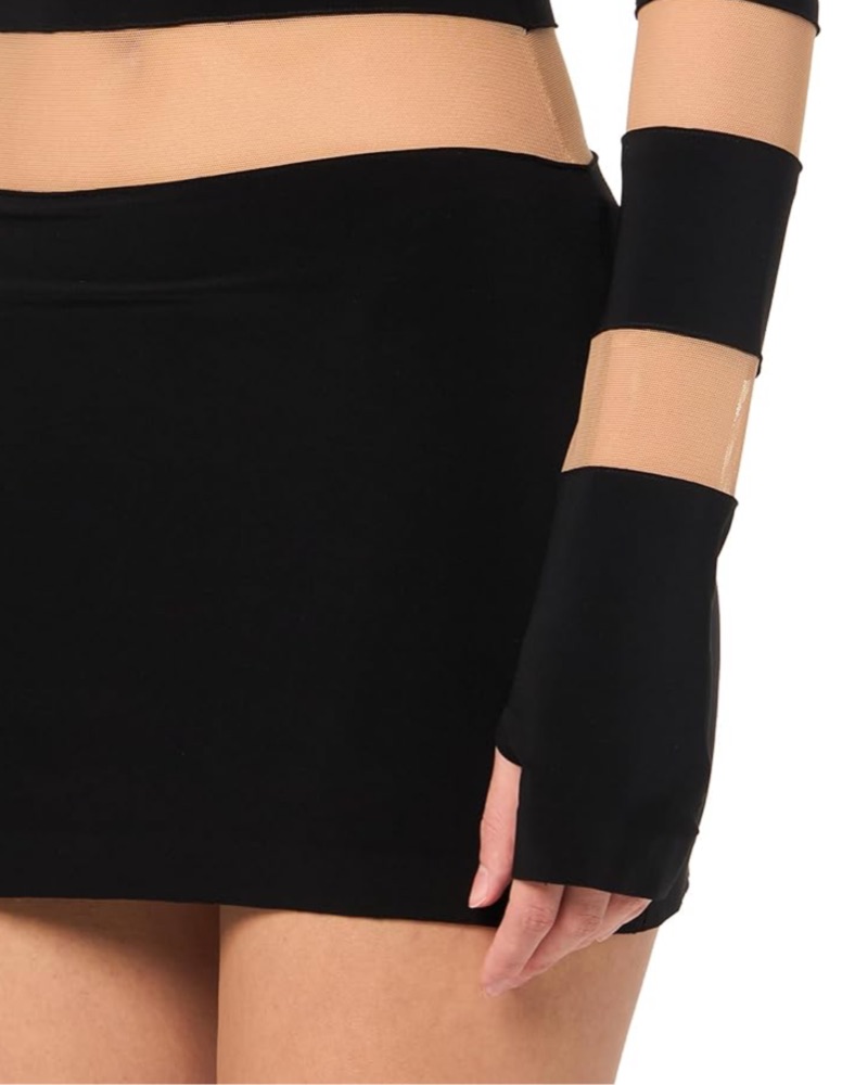 Norma Kamali Spliced Long Sleeve mini Dress. Has an added underwear liner in it helps the dress from riding up. Nude sheer strips.