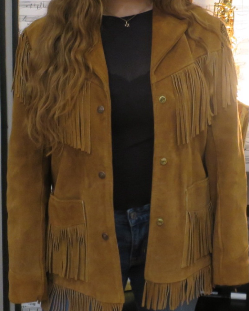 This stylish suede jacket with intricate fringe details is perfect for creating a captivating boho-inspired look. Pair it with jeans and boots for a casual yet fashion-forward ensemble. Perfect for Nashville!