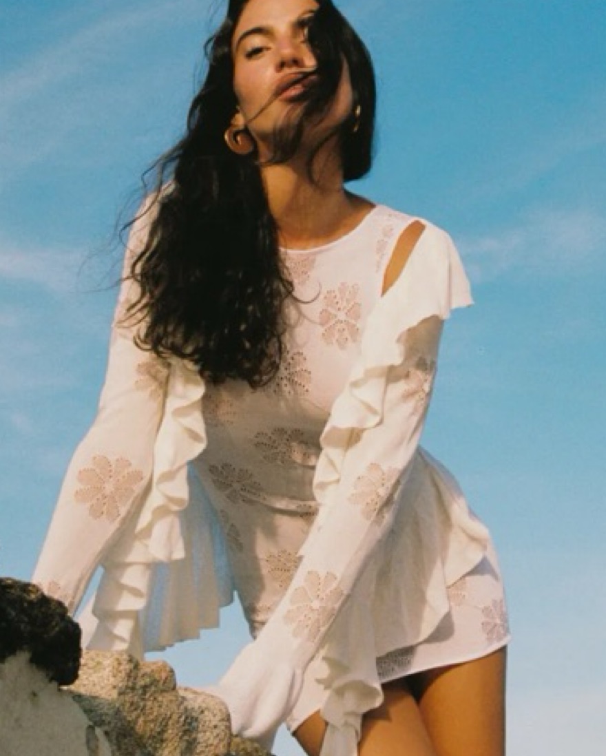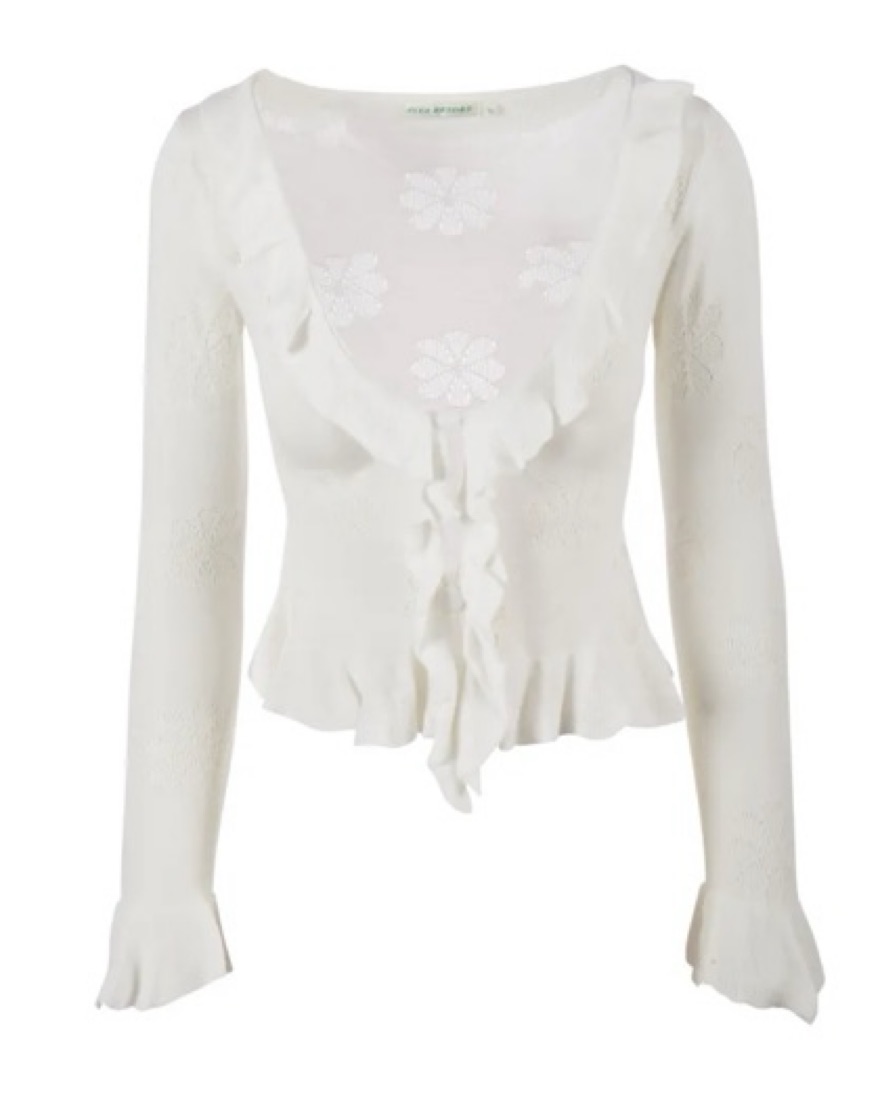 The Vanessa Cardigan in Venetian White by ASTA RESORT is an essential layering piece with a charming scalloped neckline and flared wrists, fastened with a button center closure.