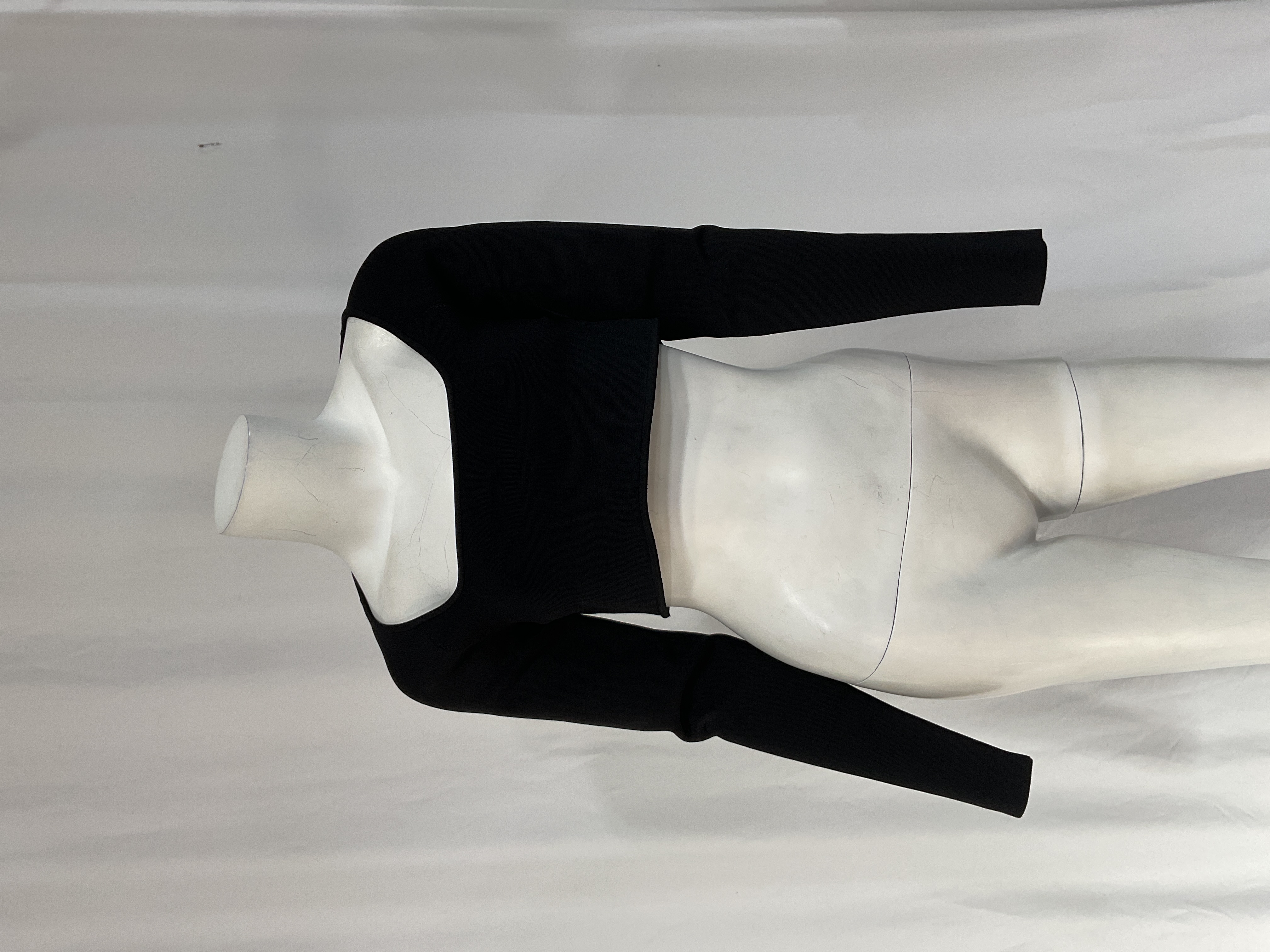 Cropped silhouette that pairs perfectly with high-waisted denim or skirts. Versatile black staple for day-to-night styling.