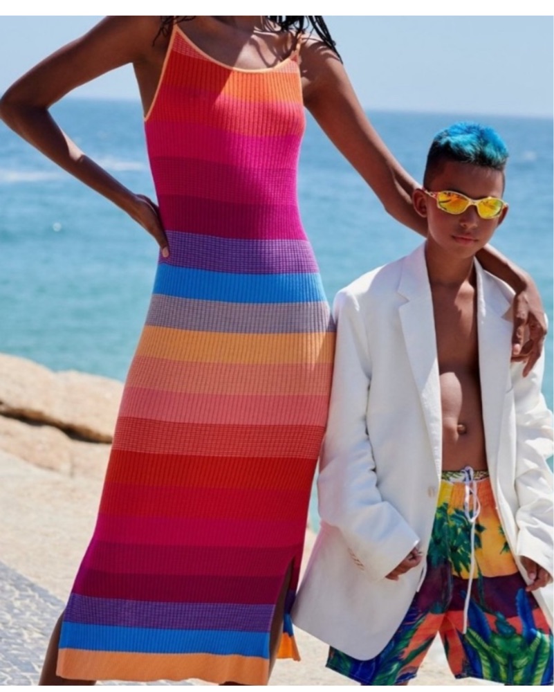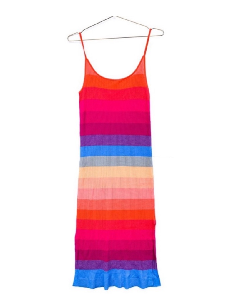 Rainbow knit dress, very flattering. Has an overall stretch so can fit many sizes:)