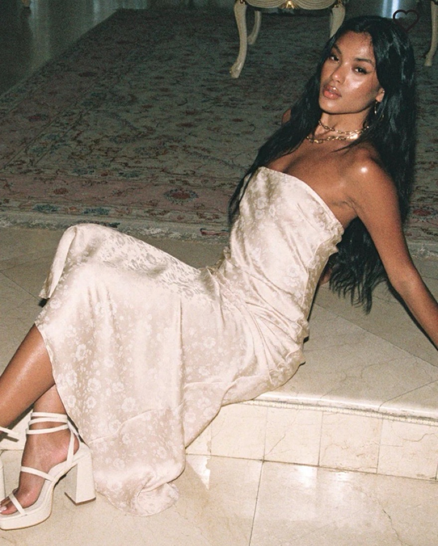 Long, floral, champagne color